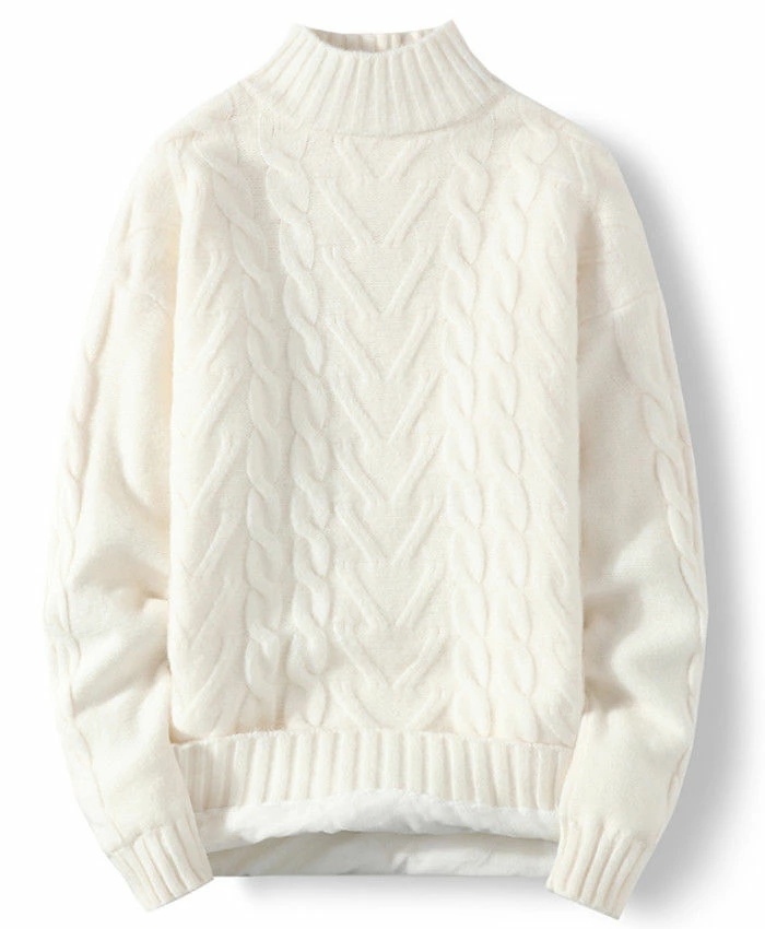 - 厚地 プルオーバーセーター メンズセーター 裏ボア スタンドカラー ニットセーター トップス Zty-3753-1 ホワイト M