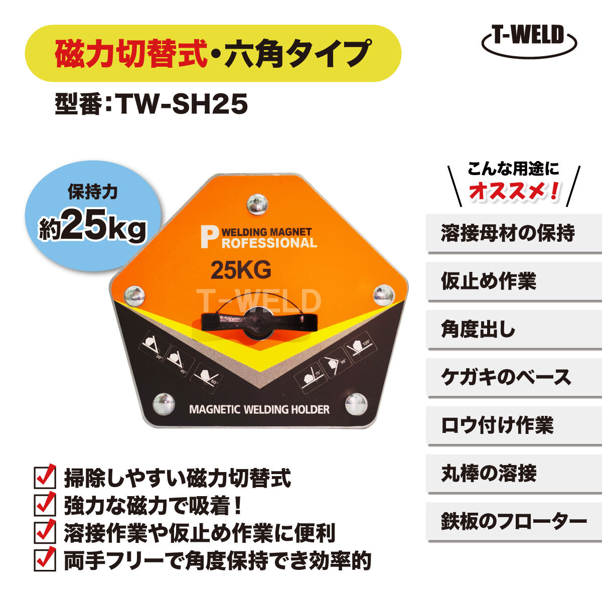 > 溶接 工具 六角タイプ マグネット ホルダー 磁力 切替式 オレンジ色 TW-SH25 保持力 25kg 1本