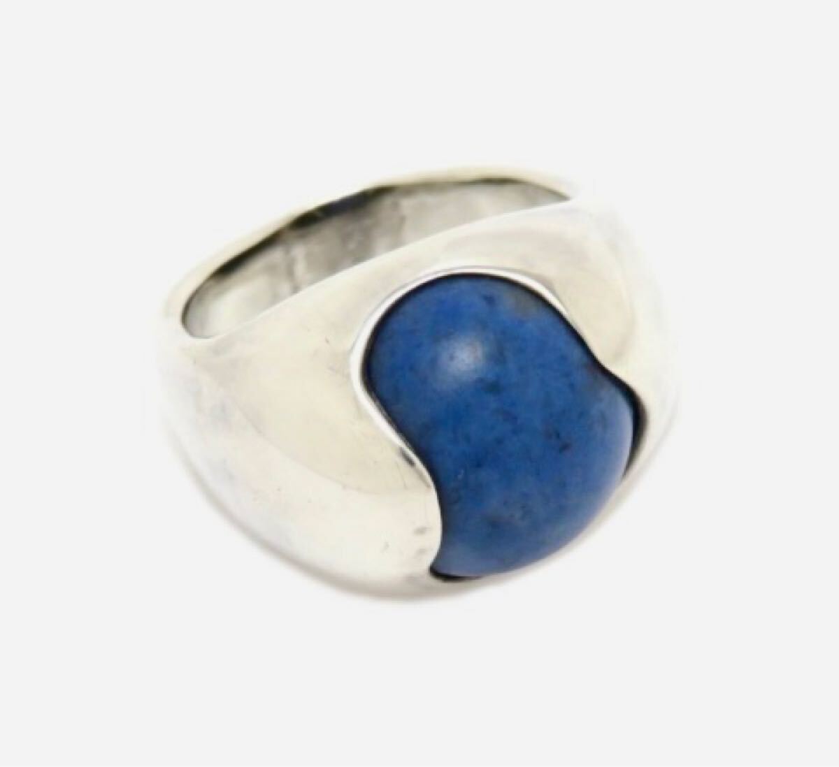 > 極希少 美品 HERMES ヴィンテージ エルメス ブルー ストーン シルバー リング 指輪 50 11号 デュモルチェライト 天然石