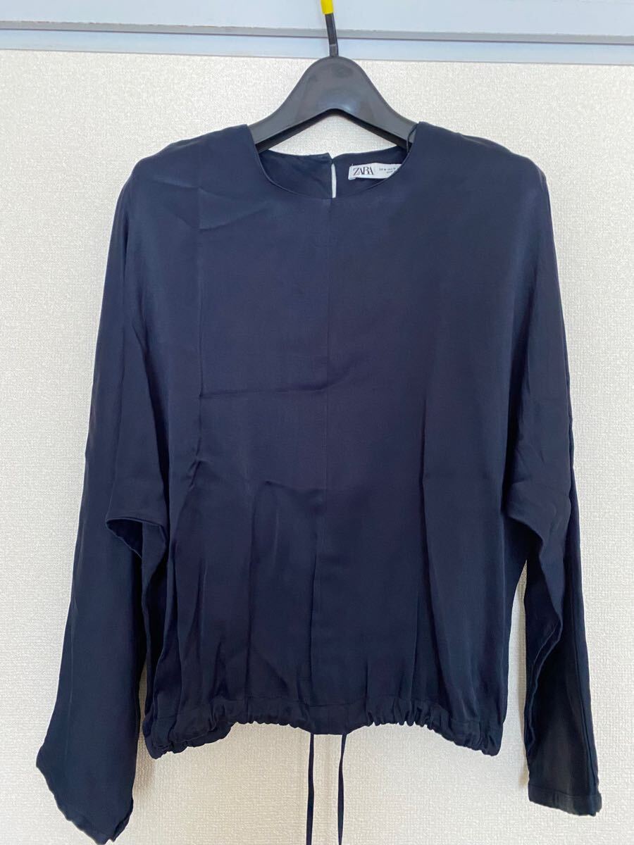 - ZARA レーヨンブラウス 光沢 サイズM ネイビー