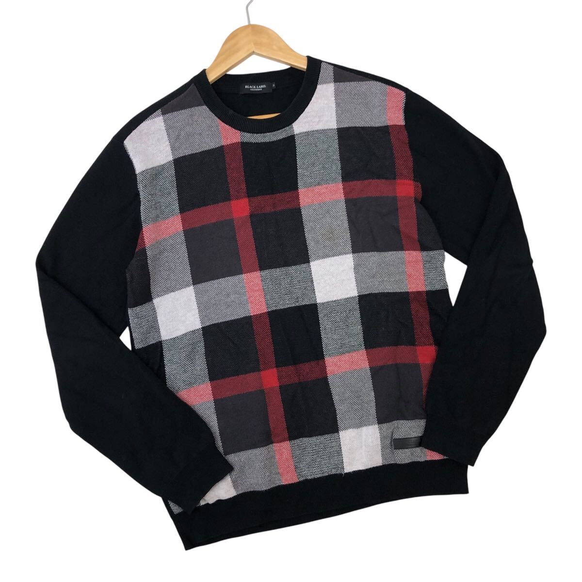 - Nm271-46 BLACK LABEL CRESTBRIDGE ブラックレーベル クレストブリッジ チェック 柄 長袖 ニット セーター トップス ブラック メンズ M
