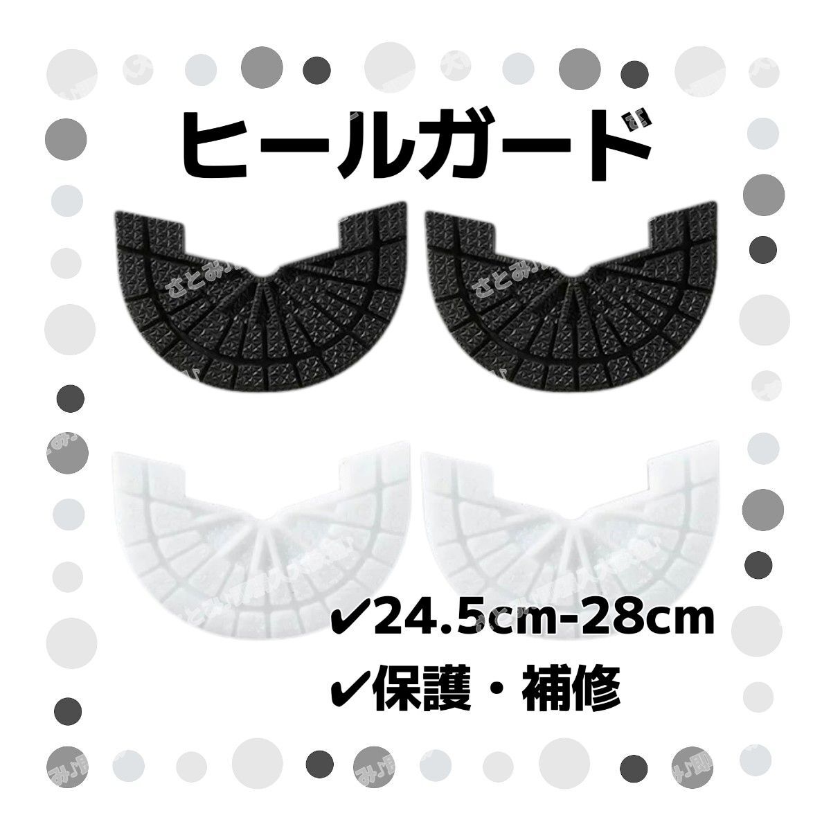 - ヒールガード 4枚セット 2足分 ソールガード スニーカー プロテクター 保護 補修 24.5cm-28cm ブラック ホワイト