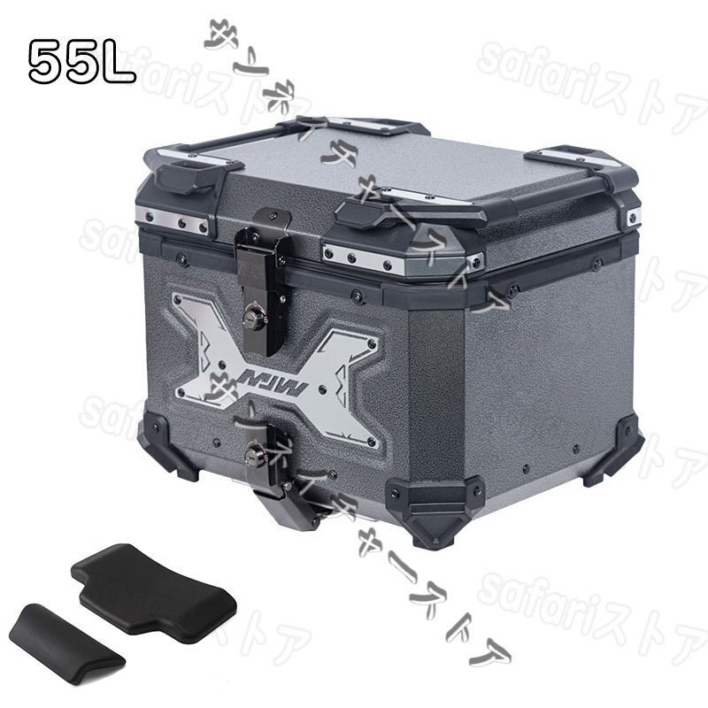 > リアボックス トップケース 大容量55L ABS 汎用 取り付け金具/取り付けベース/バックレスト/鍵2本付き 収納ケース 防水 頑丈 ツーリング 黒