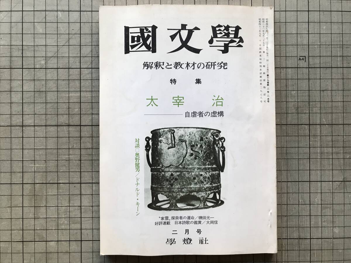 > 『国文学 解釈と教材の研究 第19巻2号 太宰治 自虐者の虚構』奥野健男・ドナルド・キーン・磯田光一・相馬正一 他 学燈社 1974年刊 10776