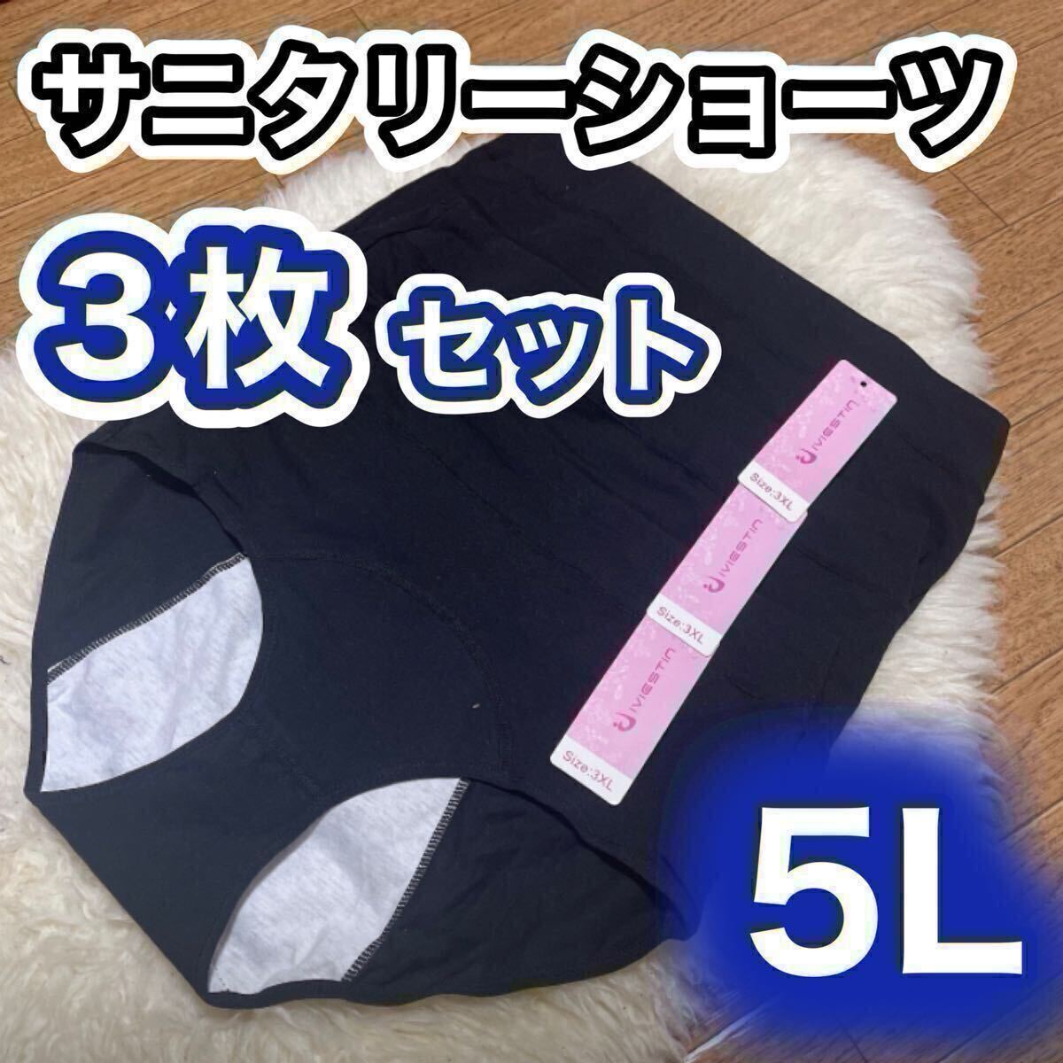 > サニタリー ショーツ 3枚セット ブラック 黒 生理 5L XXXXL 産褥 生理 パンツ 防水 下着 レディース マタニティ パンツ 大きいサイズ