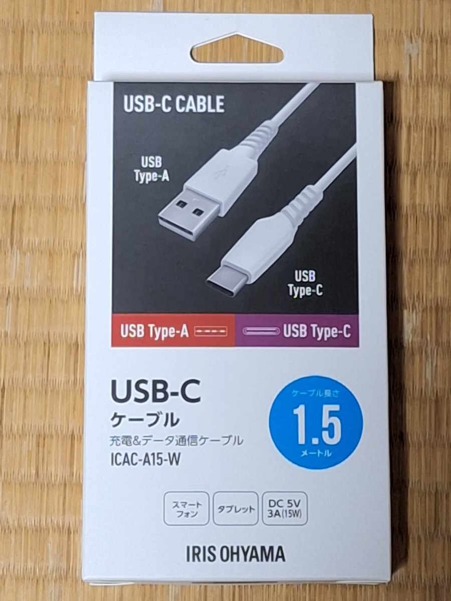 - アイリスオーヤマ/USB-Cケーブル 1.5m/ICAC-A15-W