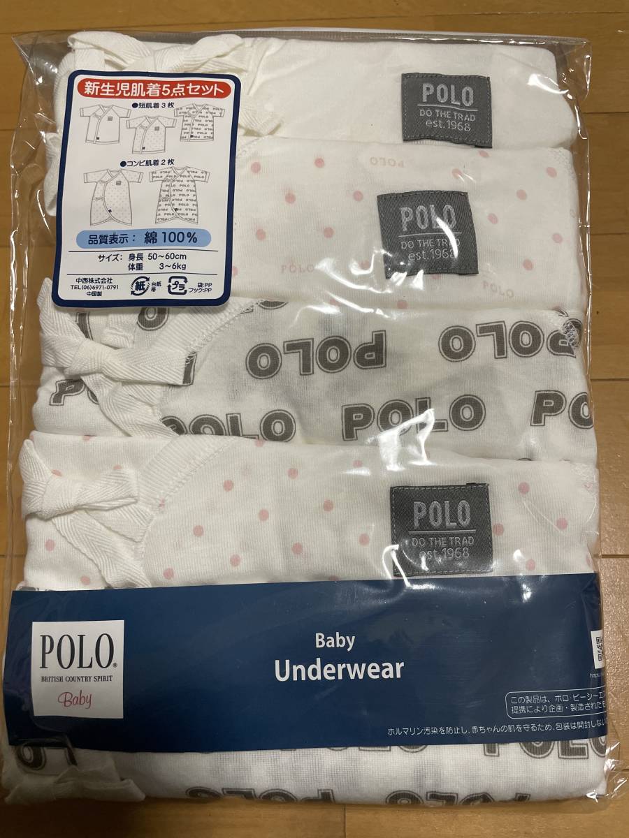 - 送料無料!! 新品未使用 POLO ポロ 50〜60 新生児肌着5点セット(短肌着3・コンビ肌着2)白/ピンク/グレー ベビーアンダーウェア 即決