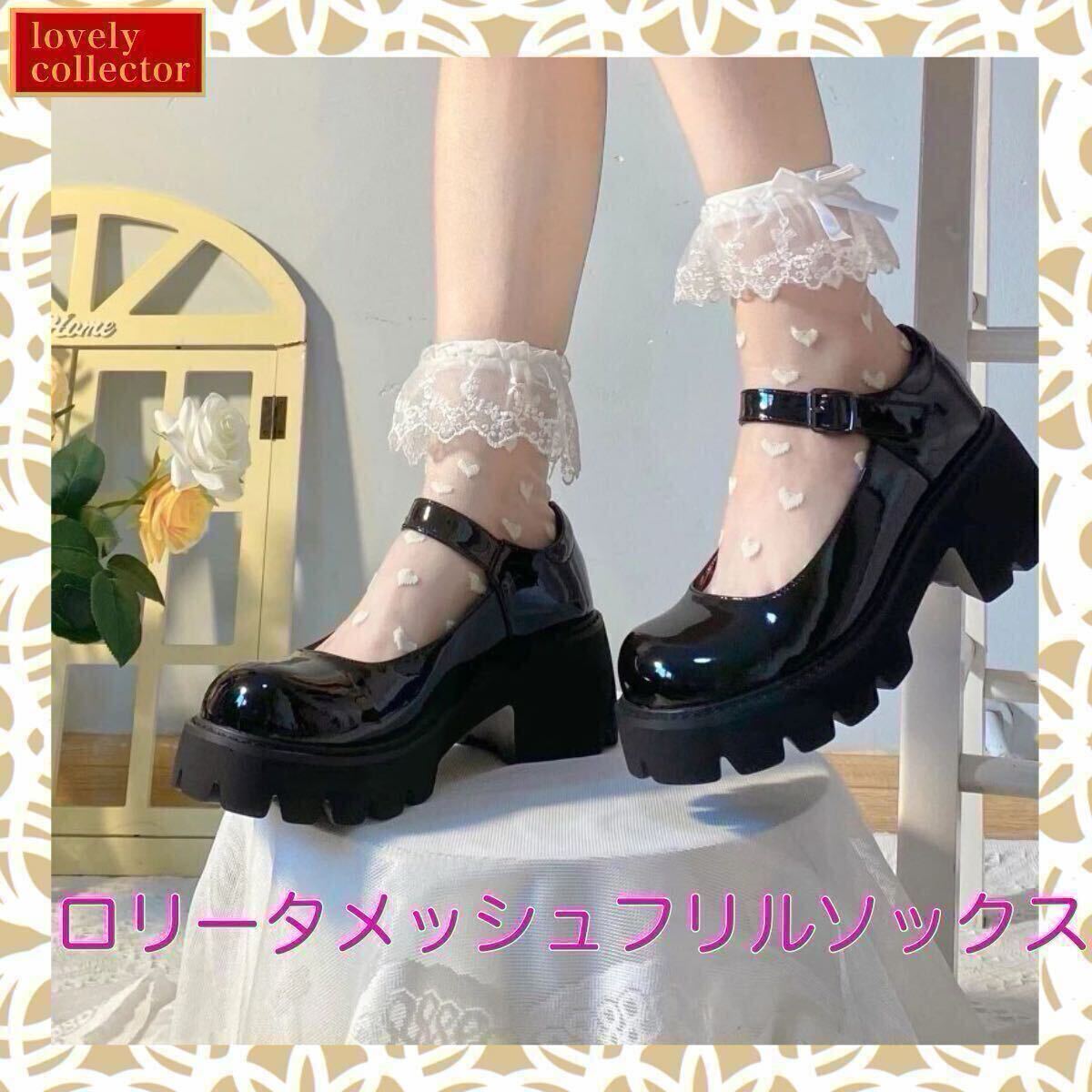 - レディースソックス ショート 靴下 メッシュロリータ フリル 白 ホワイト
