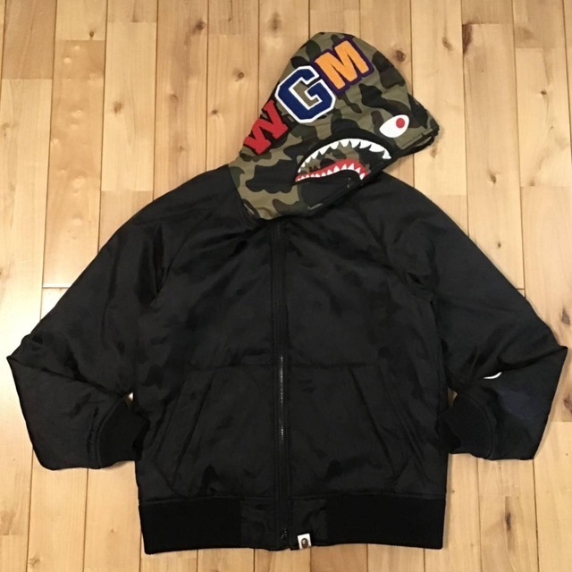 > 中綿 シャーク パーカー ジャケット Mサイズ 1st camo shark full zip hoodie jacket a bathing ape BAPE camo エイプ ベイプ fni826