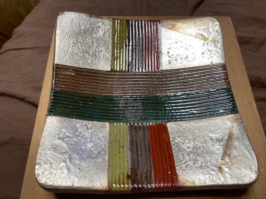 - 北大路魯山人 写 「美食道楽」 和食器揃 色絵銀彩糸巻文四方皿 5客の 内の1枚 祥山窯 250113−13