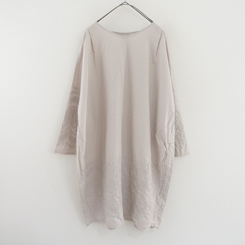 > ピュアルセシン pual ce cin *コットン混刺繍ワンピース*ライトグレーベージュ長袖ロングスリーブ(33-2412-408)【41A52】