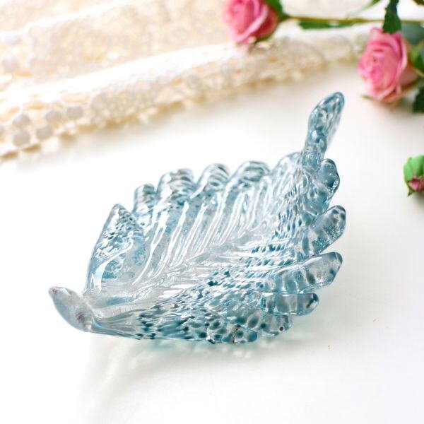 - トレー トレイ ガラス おしゃれ リーフ 小物トレイ ペーパーウェイト ガラスのトレイ リーフ ブルー 送料無料(一部地域除く) ebn7681