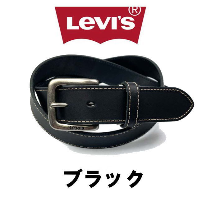 - ブラック 黒 リーバイス 6604 リアルレザー 本革 ステッチ ベルト ユニセックス