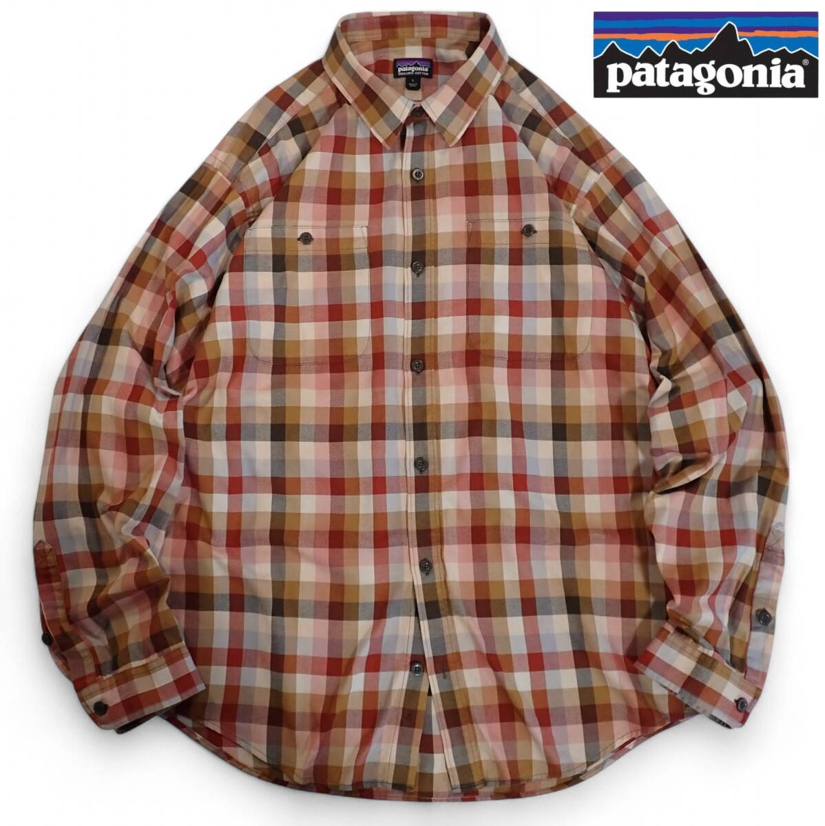 > 6317/patagonia 長袖シャツ L 2020秋冬 微かな起毛●洗濯プレス済●ピスネーム パタゴニア コットン ブラウン系チェック柄 メンズ 古着