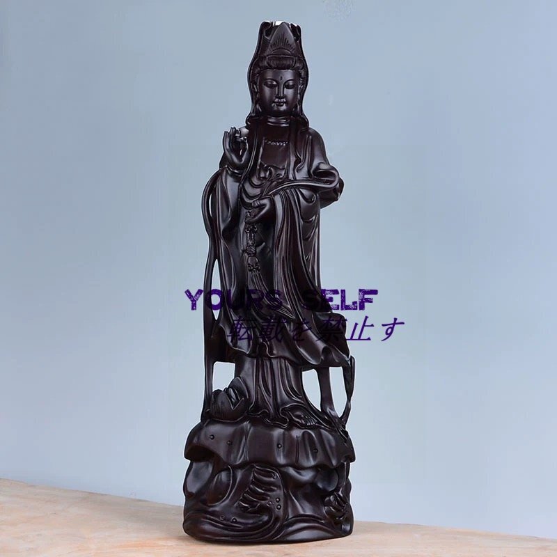 - 仏教美術 木造 木彫 観音菩薩 観音菩薩立像 観音像 仏像 置物 精密細工 風水 開運 彫刻工芸品