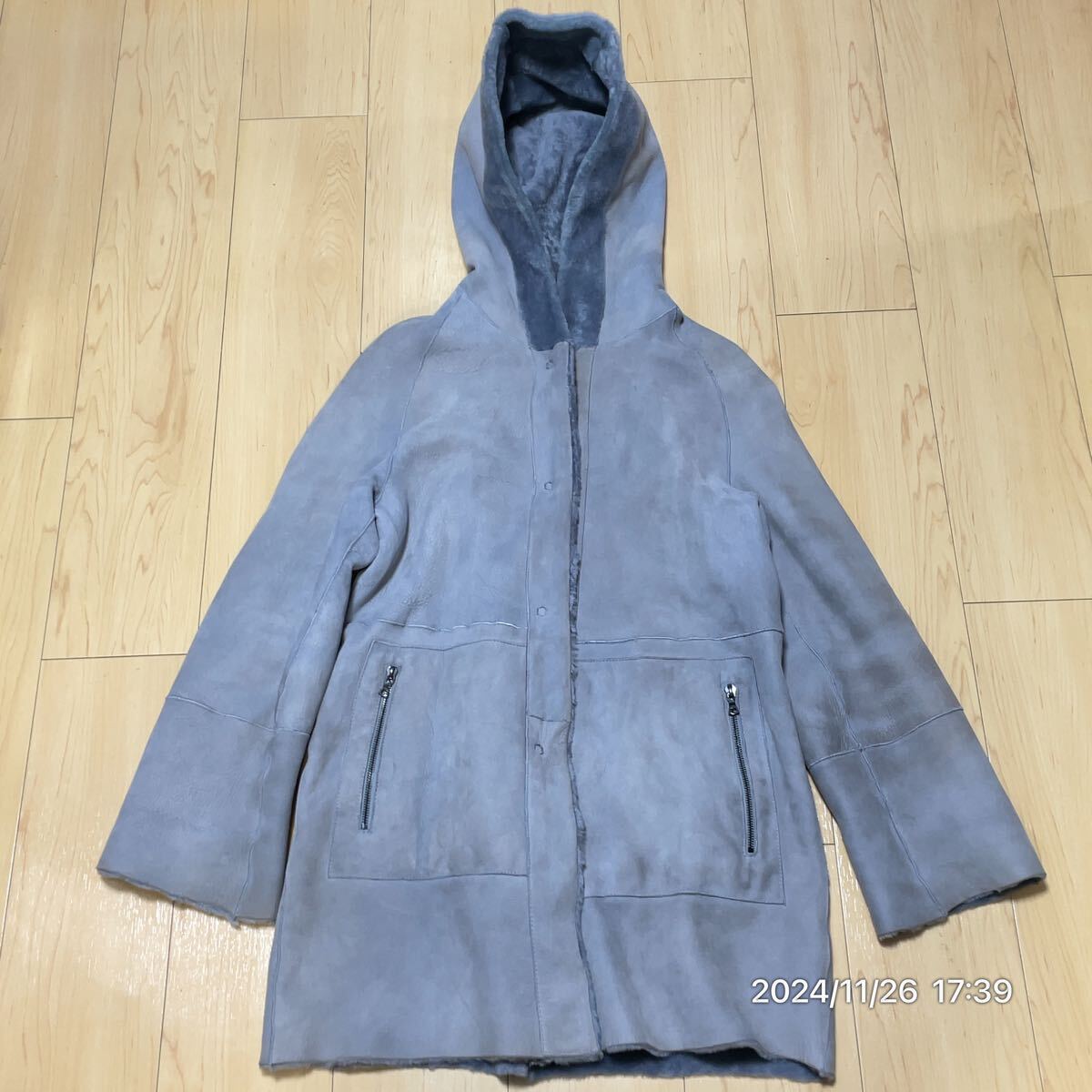 - DROMe ドローム ムートン レザー 革 フード付き リバーシブル ハーフ コート