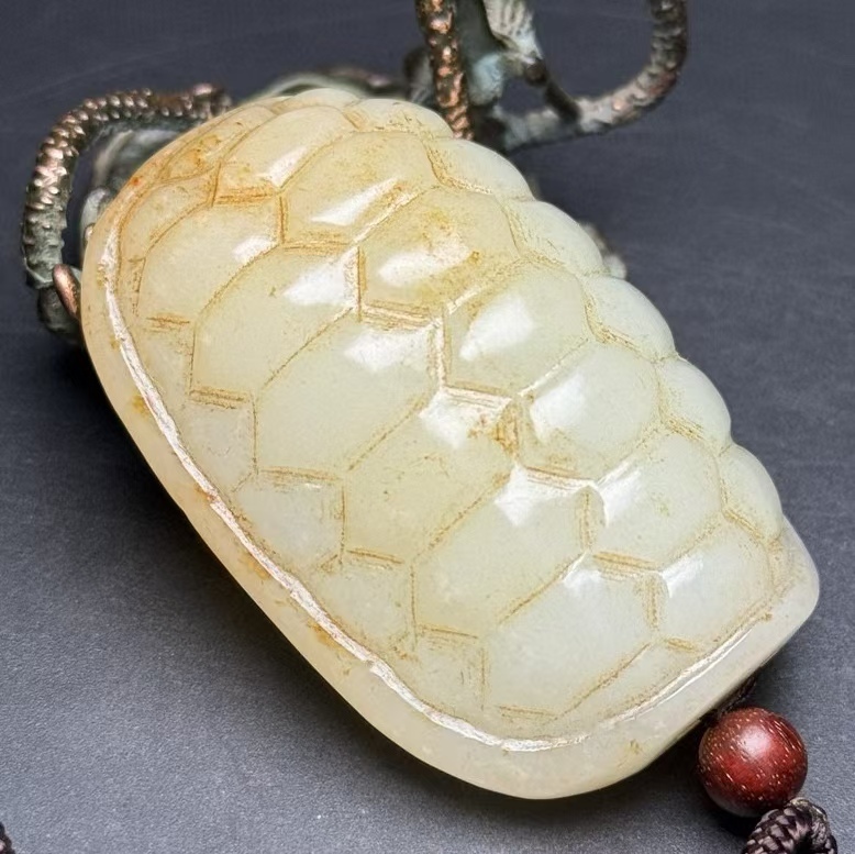 - 清代 古玉 ・旧藏 老和田玉龜甲 中国古美術品 古時代物 唐物・アンティーク 古置物 1.12