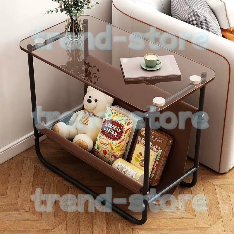 - コーヒーテーブル リビングテーブル 二層収納スペース キャスター付き テーブルトップは強化ガラス製安定したスタンド65*30*53cm