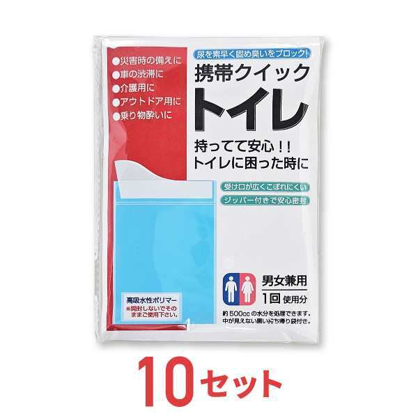 > 【10個セット】携帯クイックトイレ 災害・渋滞時に大活躍 尿を素早く固め臭いをブロック 使い捨て凝固剤&持ち帰り袋付き 介護にも便利