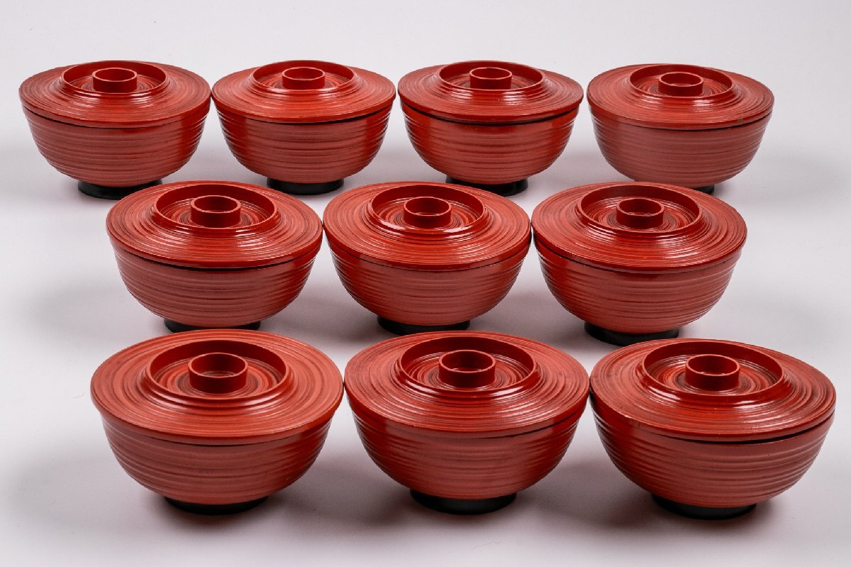 - 【うつわ】 朱塗真塗沈金蒔絵吸物椀 10客 E1278B バラ売り可能です 古美術 骨董 古玩 唐物 和食器 日本料理 懐石 料亭