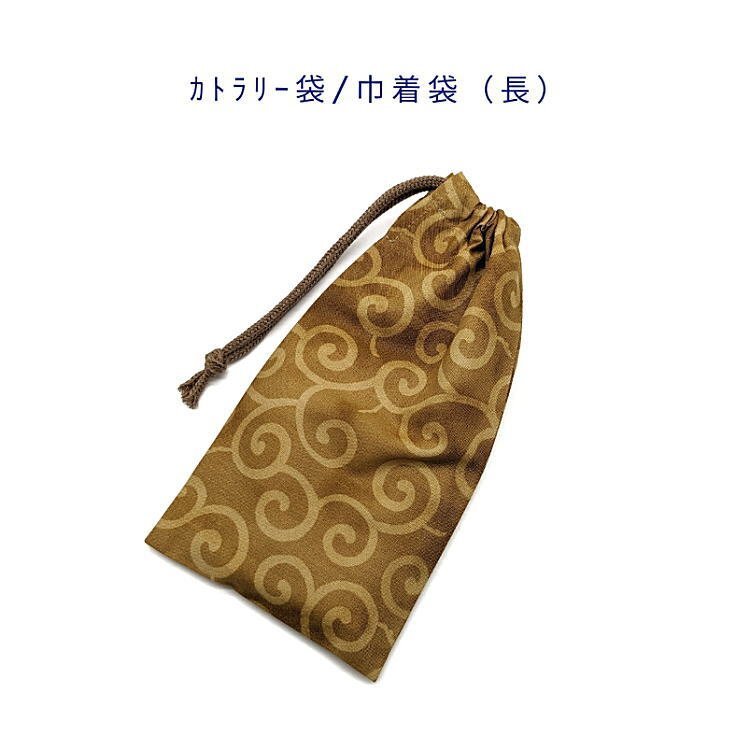 > カトラリー袋・巾着袋 長方形【和柄 唐草模様 くすみブラウン】カトラリーケース 箸袋 はし袋 コップ袋 ポーチ 唐草文様 古典柄 和風 和調