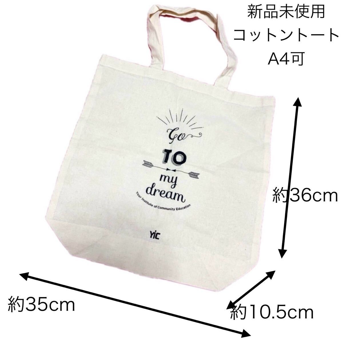 - 新品未使用 コットントートバッグ A4可 マチ付きエコバッグ オフホワイト ミニショッピングバッグ 生成 英字ロゴ 綿