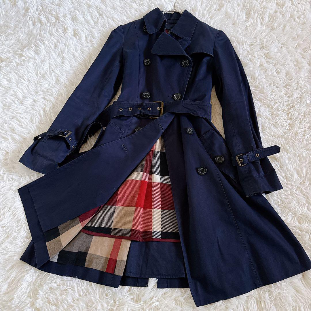 - 現行タグ BLUE LABEL CREST BRIDGE ブルーレーベル クレストブリッジ ライナー付き トレンチコート チェック ウエストベルト付き Aライン