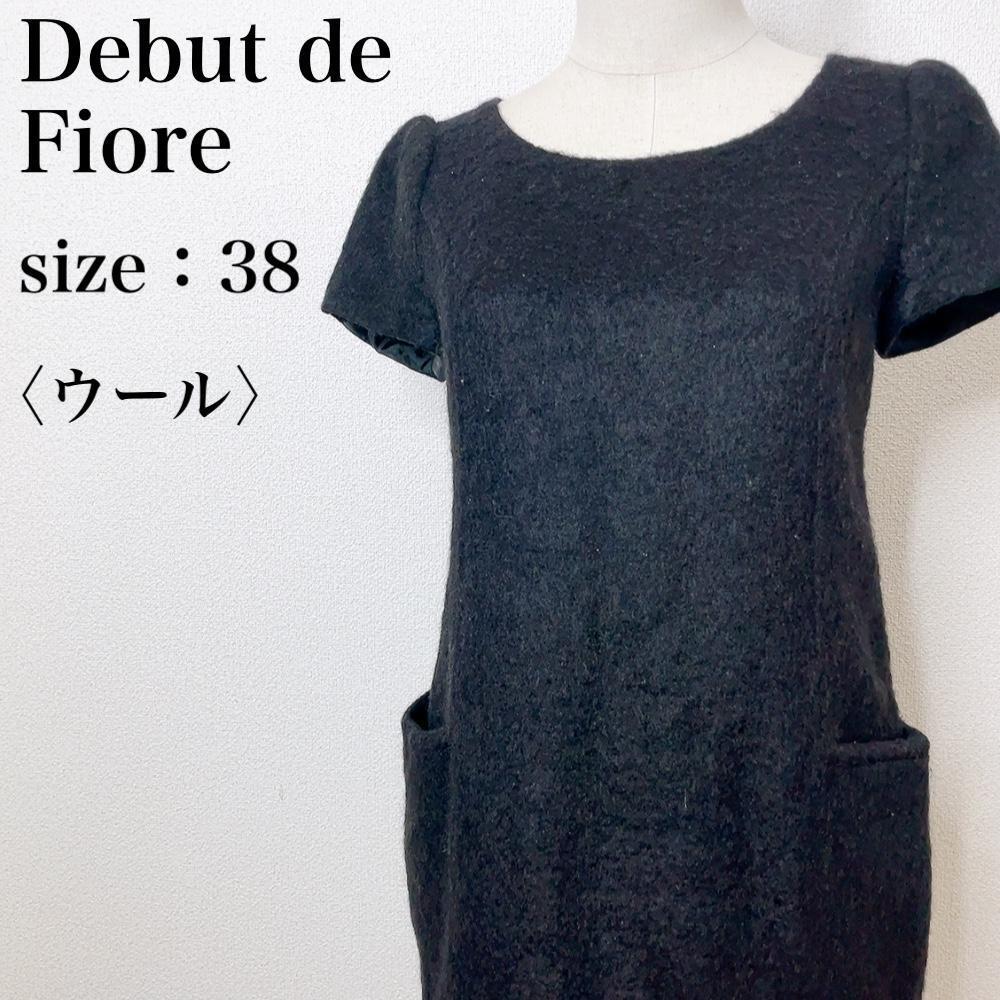 > デビュードフィオレバイレッセパッセ カジュアル ひざ丈 ミディ リラックス ニットワンピース 高級感 ブラック ポケット付き ん35