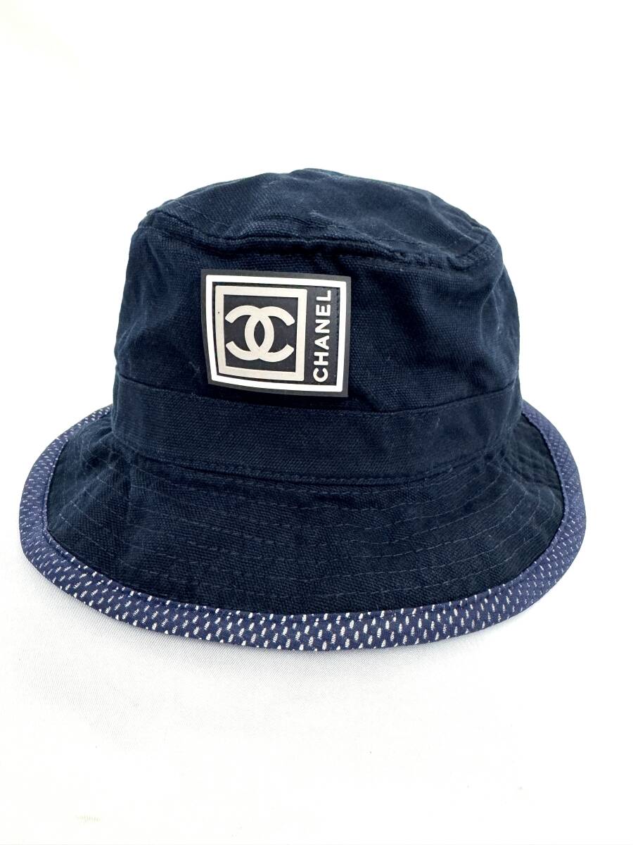 - 7A1911【本物保証】シャネル スポーツ ライン ハット 帽子 ココマーク ロゴ ネイビー Mサイズ CHANEL