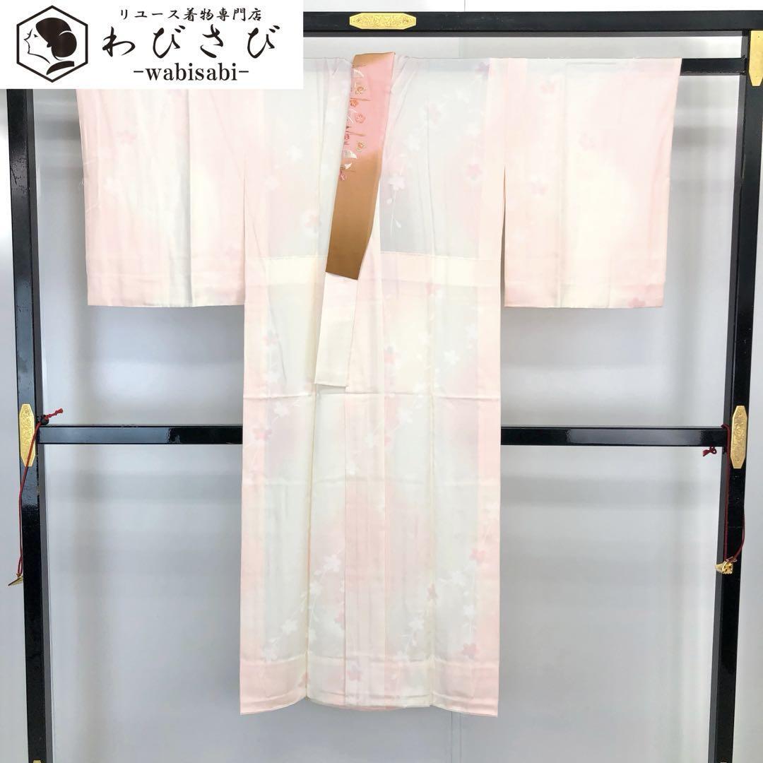- 長襦袢 桜の花模様 刺繍半衿付 暈し 薄今様色 J-253 着物 きもの kimono 和服 和装 中古 リサイクル着物 【送料無料】