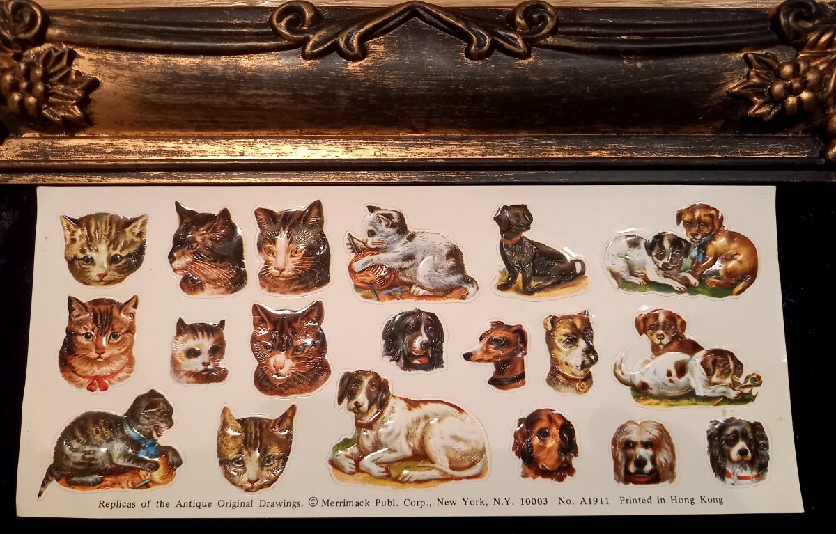 - 即決☆未使用☆昭和レトロ☆可愛い猫と犬アンティーク ステッカーシール☆(株)メリマック☆実写猫 実写犬☆アメリカンヴィンテージ