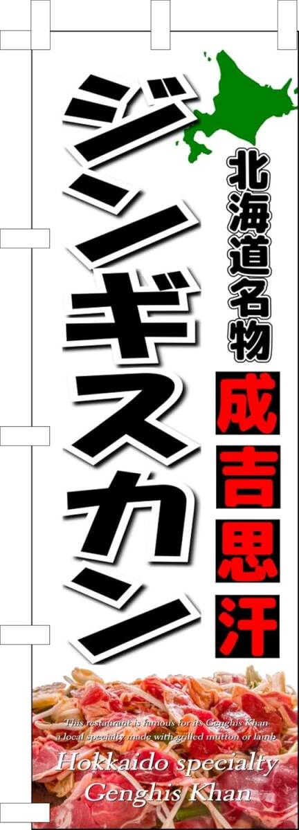 - のぼり旗「ジンギスカン のぼり ジンギスカン 幟旗 ジンギスカン ラム肉 ジンギスカン 北海道名物 成吉思汗 北海道の焼肉 白」送料360円