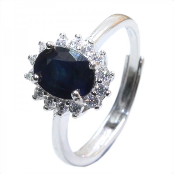 本物の天然サファイアシルバーリング、6×8mm、自然な黒サファイア、925スターリングシルバー