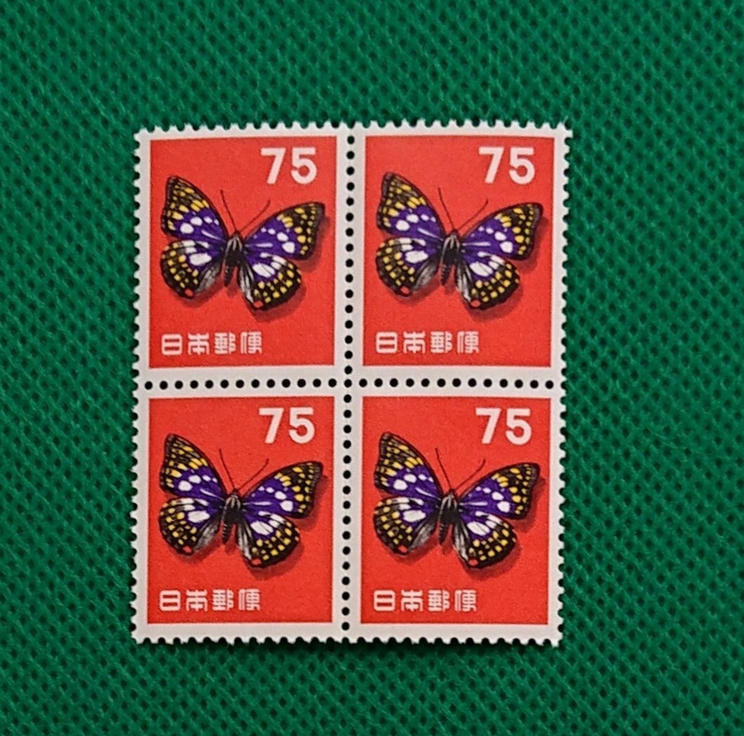 - オオムラサキ/旧/4枚ブロック/第1次円単位/未使用/NH/極上美品/シミ無/シワ無/裏糊良好/1956年/昭和切手/普通切手/No.142