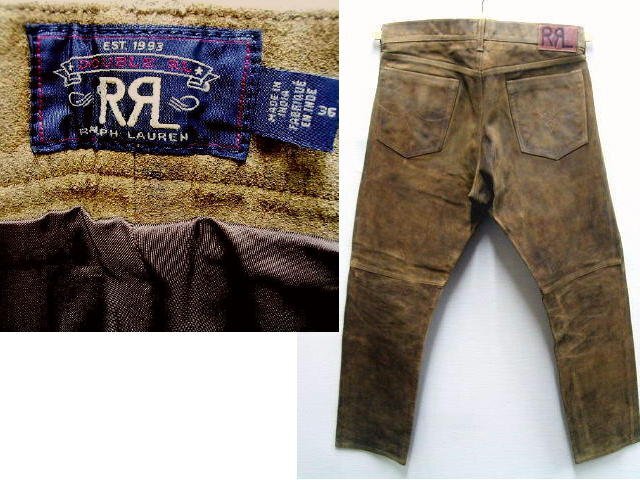 > ◇即決[W36]RRL 黒タグ 一ツ星 21AW 牛革スエード スウェード レザーパンツ ビンテージ加工 汚れ スリム SLIM FIT デニム パンツ■6193