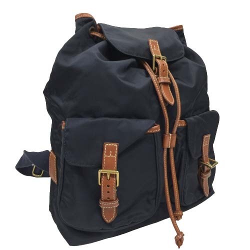 > 21-1215【美品】フェリージ リュックサック レザーxナイロン 15/65/DS バックパック 青 ネイビー ブラウン 茶色