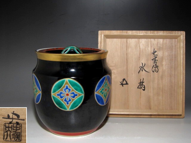 - 手塚央(玉堂の子)七宝絵水指 裏千家鵬雲斎花押☆z68