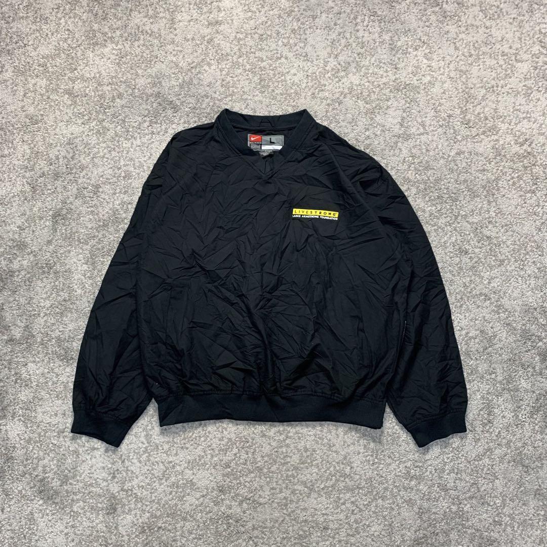 > ナイキ 90s ナイロンプルオーバー 黒 Vネック 企業ロゴ 刺繍 Lサイズ
