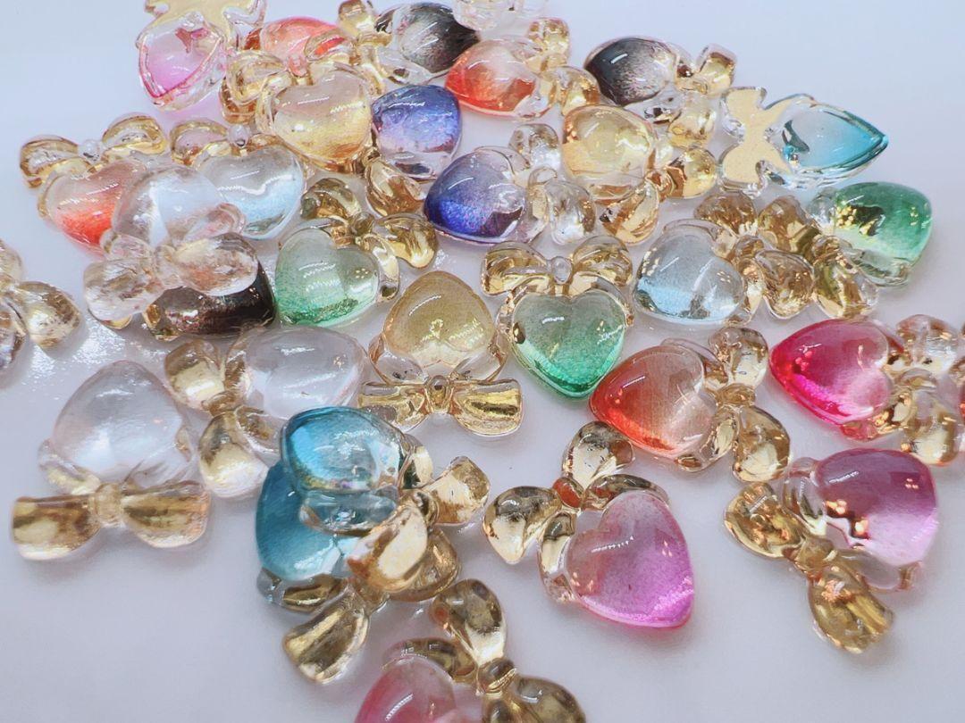 - ネイルサイズリボンハート30個 デコパーツ プラパーツ 星 ミニサイズ