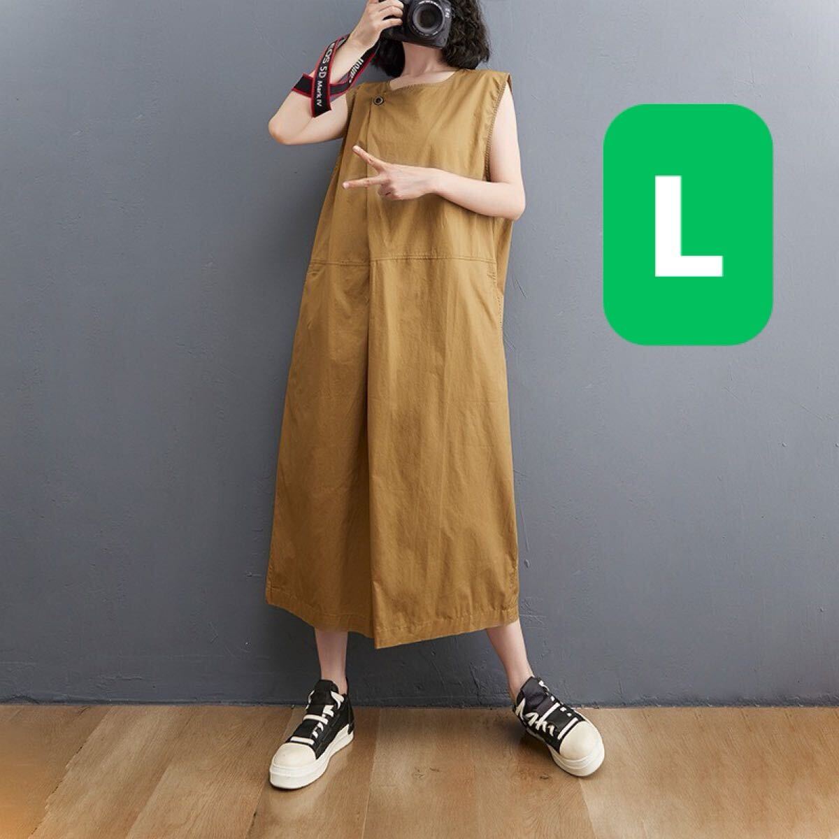 - サロペット オールインワン ノースリーブ ワンピース ワイドパンツ ボトムス つなぎ 体型カバー マタニティ オススメ 人気商品 黄色 L