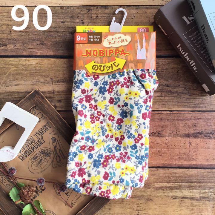 - 【90】花柄 裏シャギー 9分丈 のびッパ レギンス