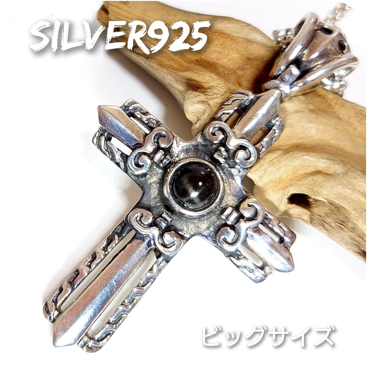 > 4798 SILVER925 BIG ブラックスター ダガークロストップ シルバー925 天然石 十字架 大サイズ 重厚 ソード 剣 ハンドメイド ヴィンテージ