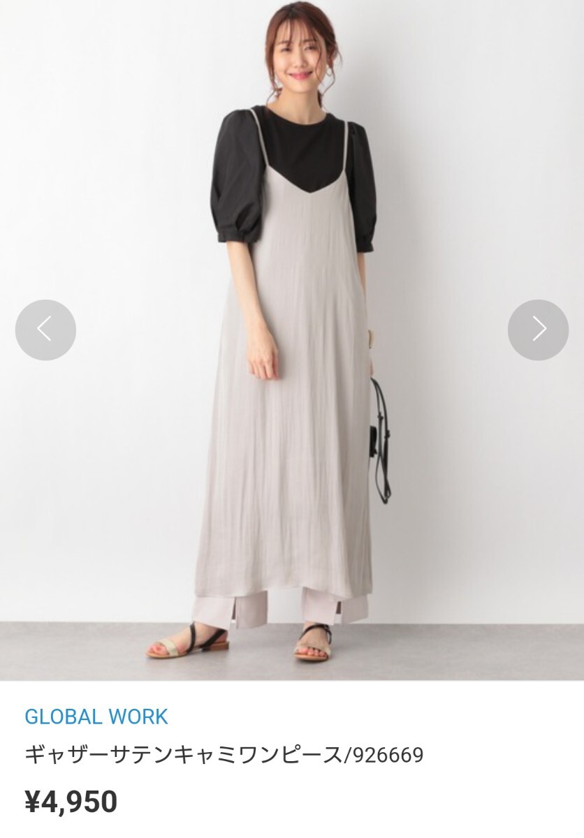 - 新品グローバルワークギャザーサテンキャミワンピースベージュ キャミソールワンピース サロペットスカート