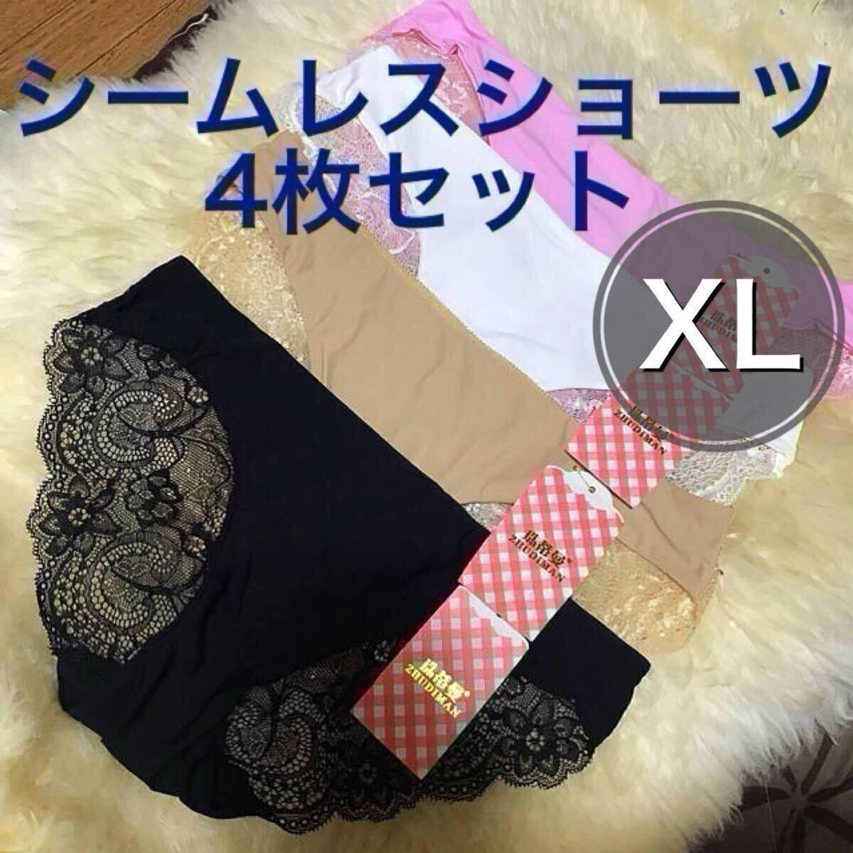 > シームレス ショーツ 4枚セット レース ブラック 黒 ベージュ 肌色 ホワイト 白 ピンク レディース 下着 まとめ売り 花柄 XL 豹柄 LL