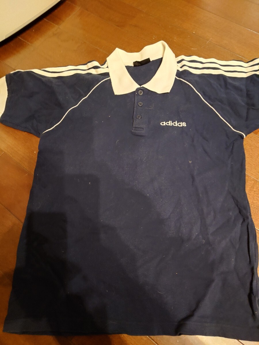 - アディダス ポロシャツ 半袖 中古 サイズ 実寸L ネイビー×ホワイト