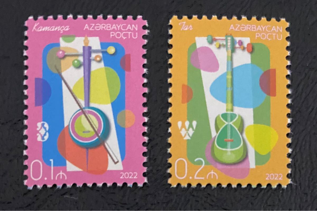 - アゼルバイジャン 普通切手 伝統楽器 カマンチェとタール 音楽 2種完 未使用 NH