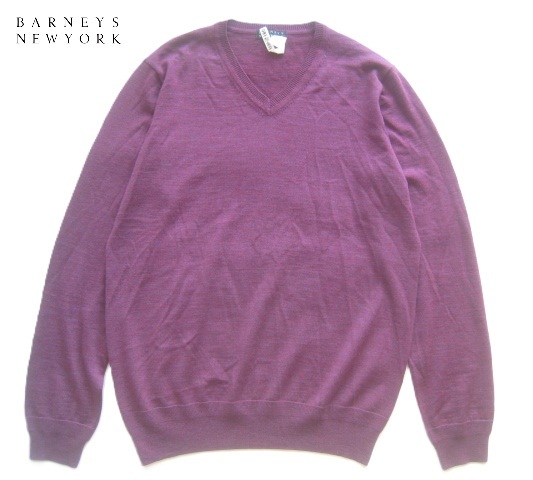 > 美品!!バーニーズニューヨーク BARNEYS NEW YORK*美シルエット Vネック メリノウールニットセーター 48 M ワイン