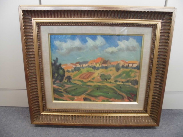 - 真作保証 里見勝蔵 2枚セット 風景5号 くだもの 26x19cm サイン有り 額有り