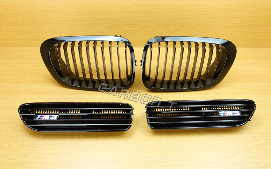 - 最上級品質▲BMW 3シリーズ E46/M3 フロントグリル+サイドマーカーフェンダー 光沢黒 シングルバー 艶有黒 セット ABS製 2001-2006