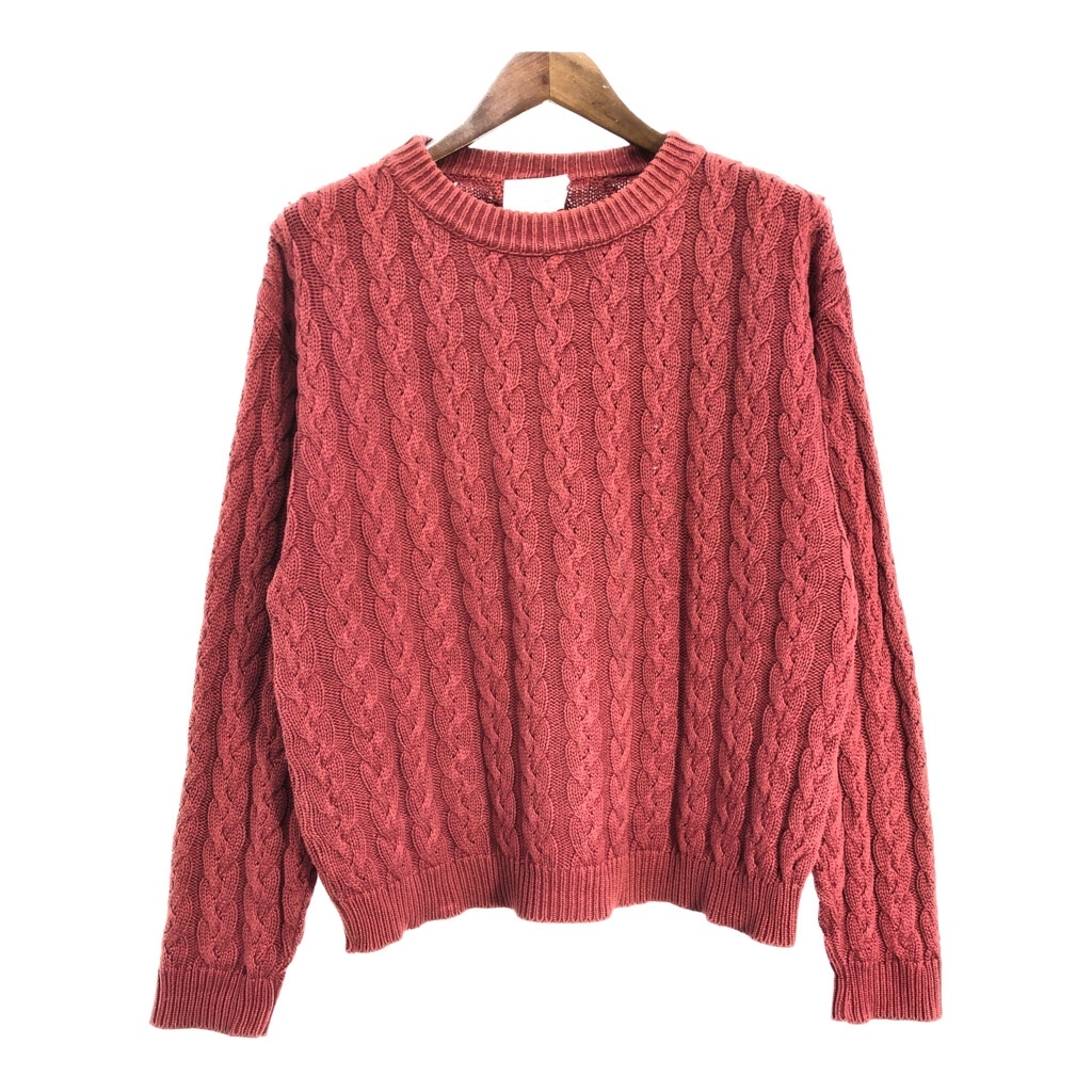 > 90年代 USA製 PERRY ELLIS ペリー エリス ケーブルニット コットンセーター レッド (メンズ M) 中古 古着 S9337